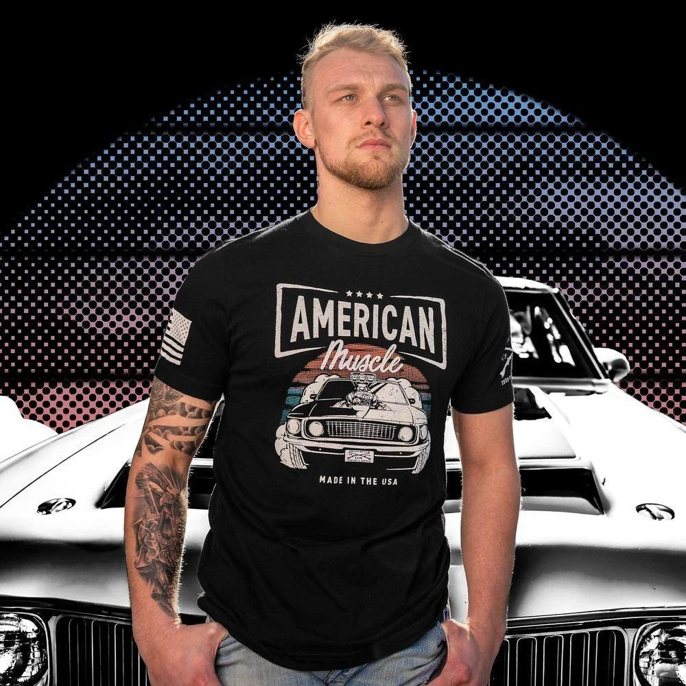 You Can’t Beat American Muscle. This American Muscle tee is a tribute to the classic American muscle. Grunt Style’s graphic tees are made with high-quality cotton to provide all-day comfort throughout all your racing adventures. Show your respect for the power and performance of these classic muscle cars with this t-shirt. The perfect way to show your appreciation for the classic automotive style.