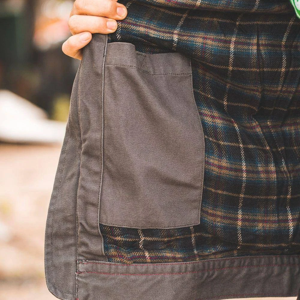 - 100% cotton canvas with soft acrylic yarn-dyed plaid blanket lining