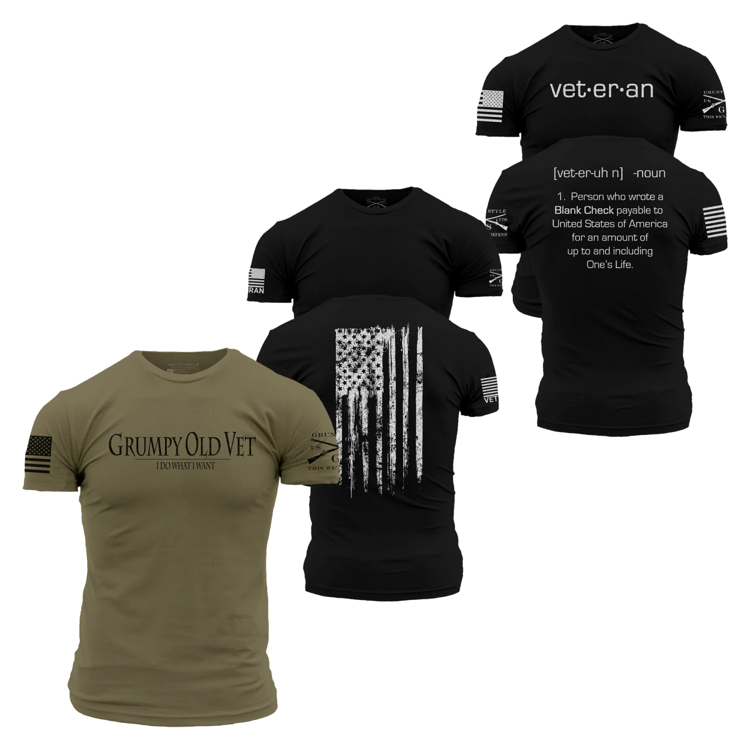 Show pride for your country and comrades in arms with this 3-pack of your favorite veteran shirts (created just for Veterans). Represent your courage with a badge of honor – the perfect way to share the respect you have earned!