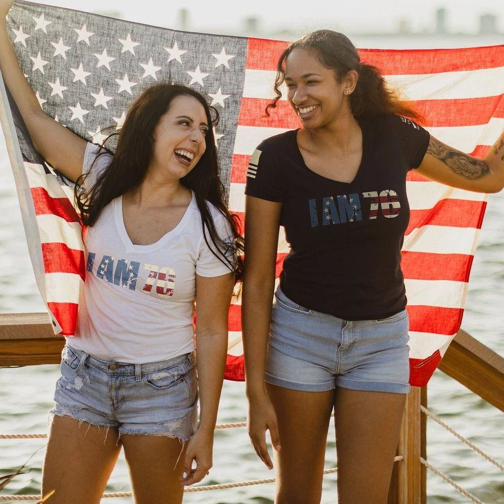 Our Women’s I Am 76 Patriotic T-Shirts¬†are crafted with the following details: