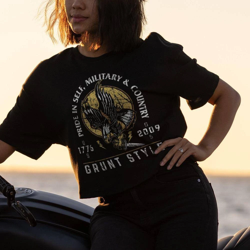 Women’s War Eagle Oversized Cropped T-Shirt – Black
